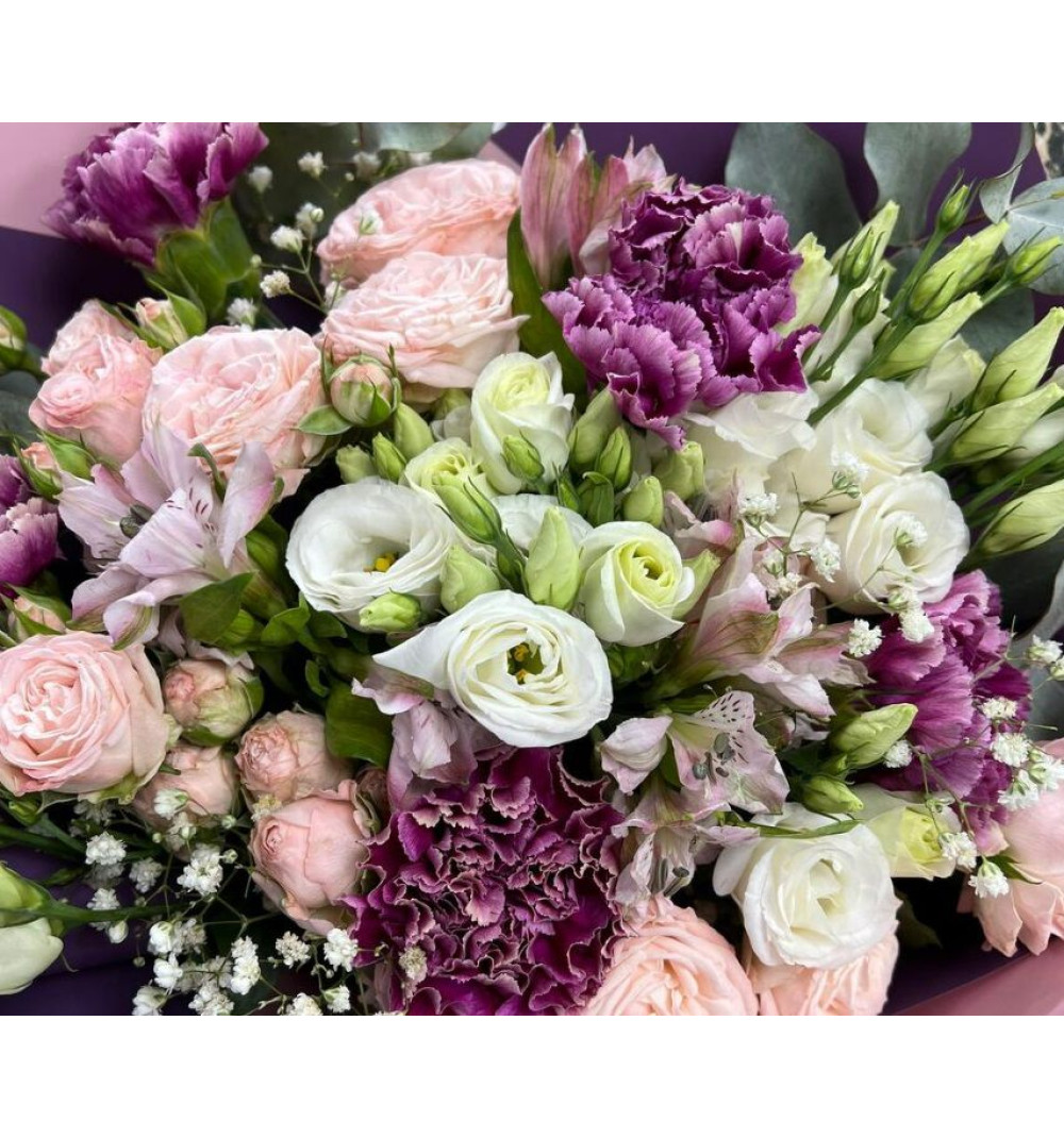 Купить Авторский букет с розами и диантусами в Зайсане за 30 000 ₸ | интернет-магазин «Guls»