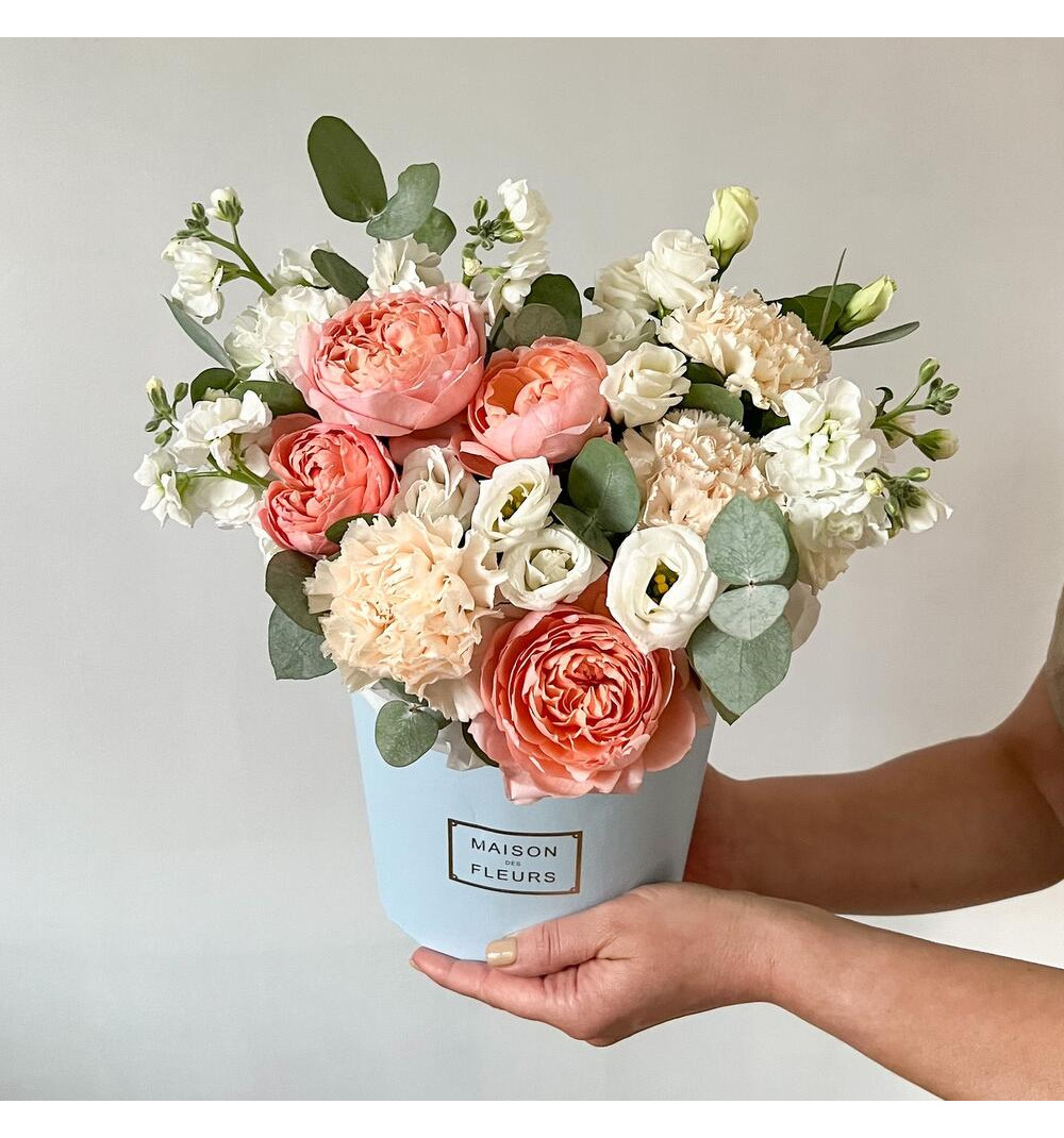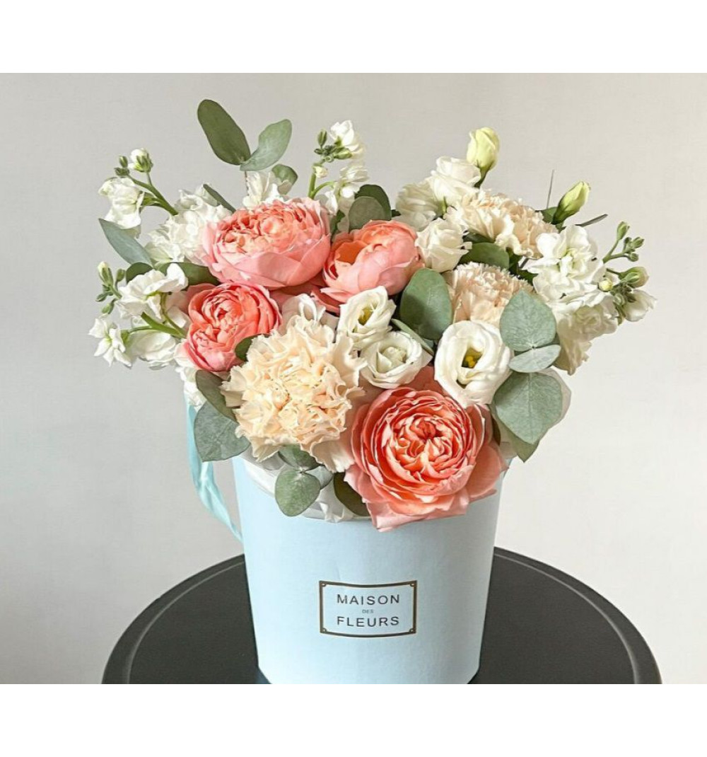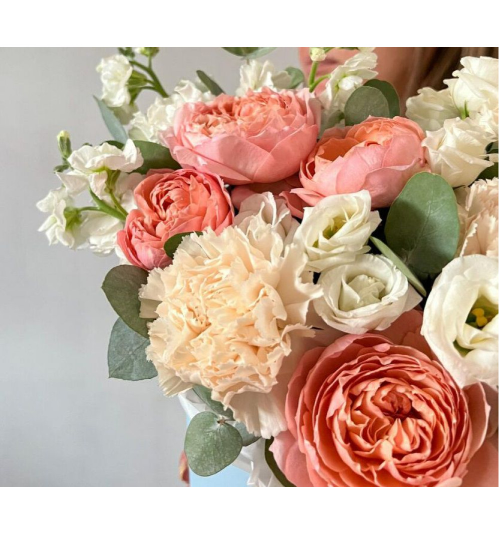 Купить Композиция с персиковыми пионовидными розами и маттиолой. в Зайсане за 25 000 ₸ | интернет-магазин «Guls»