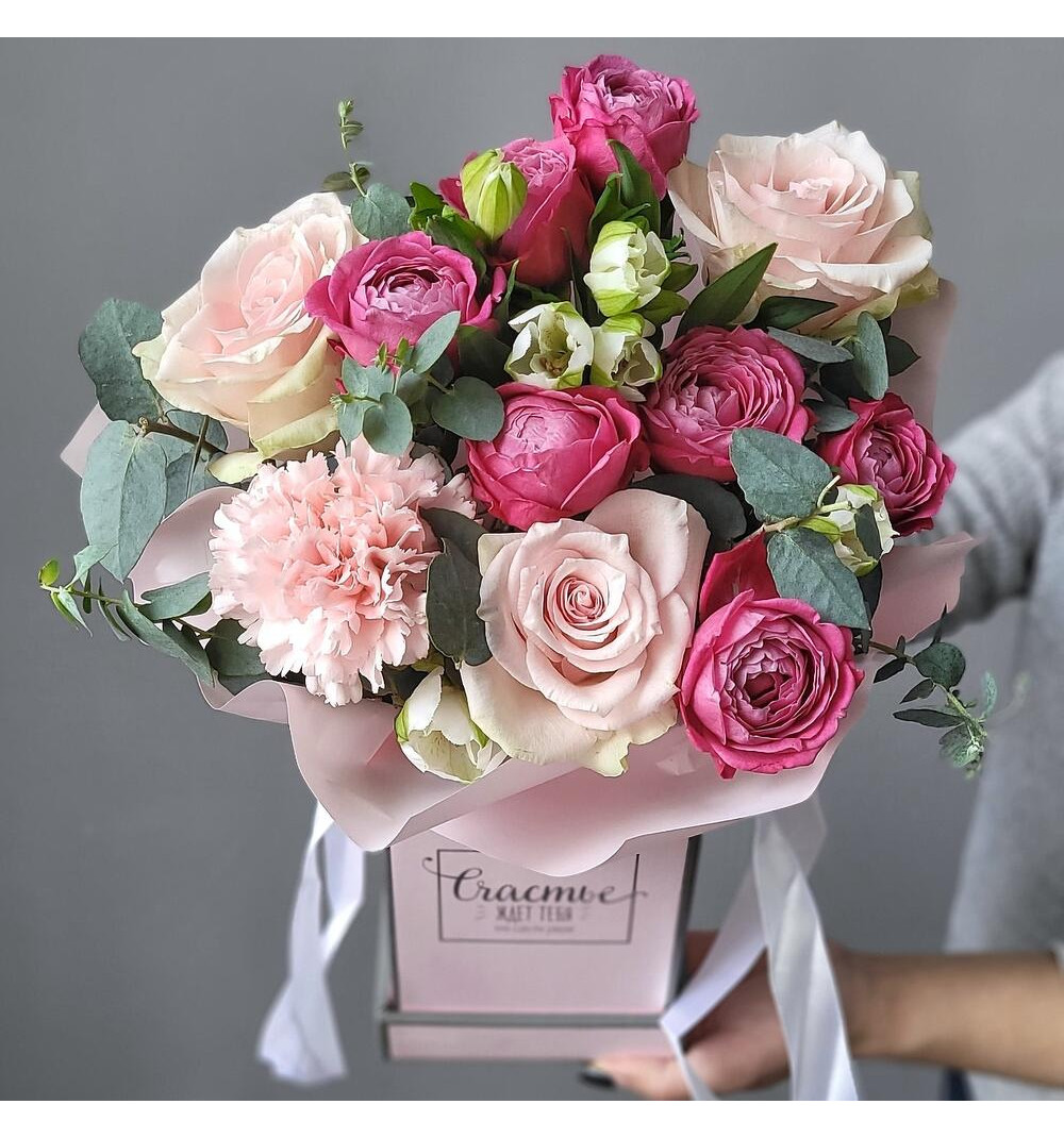 Купить Композиция с розами, пионовидными кустовыми розами и альстромерией в Зайсане за 25 000 ₸ | интернет-магазин «Guls»