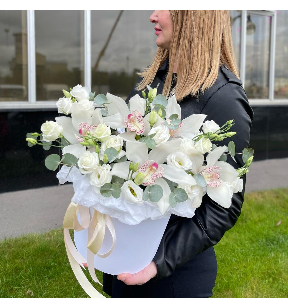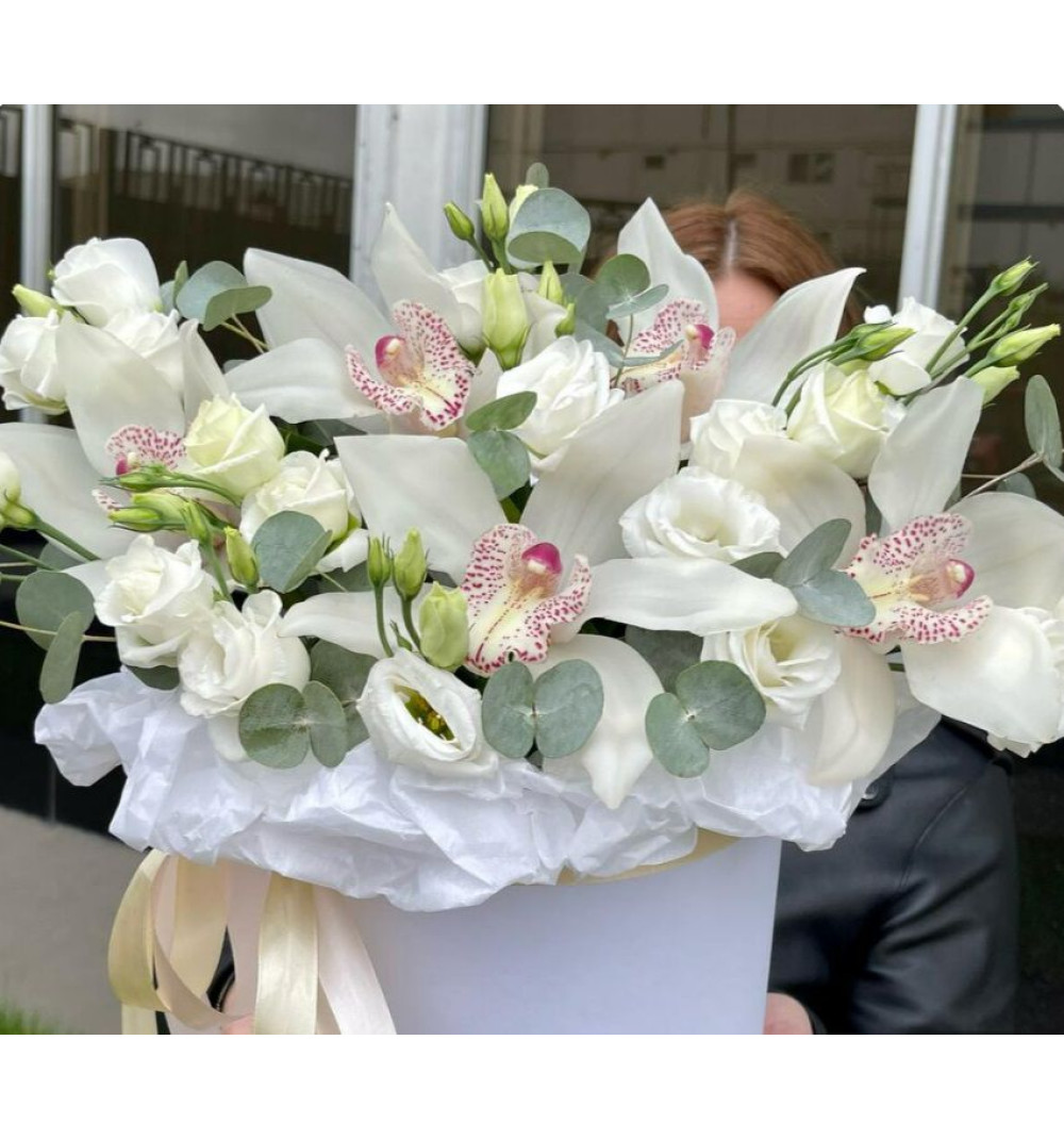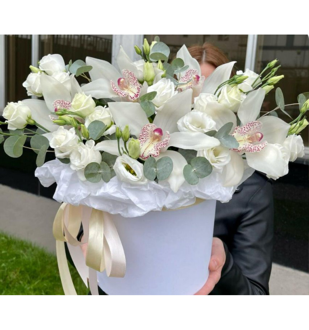 "Орхидея белая с эустомой в коробочке" - это изящный и элегантный композиционный букет, объединяющий прекрасные белые орхидеи с нежными цветами эустомы. Коробочка, в которой представлены цветы, придает композиции особый шарм и стиль. Белые орхидеи символизируют красоту, чистоту и изысканность, а эустома добавляет нежности и воздушности. Этот букет станет прекрасным подарком для особого человека, даря радость и восторг своим утонченным и изысканным обликом.