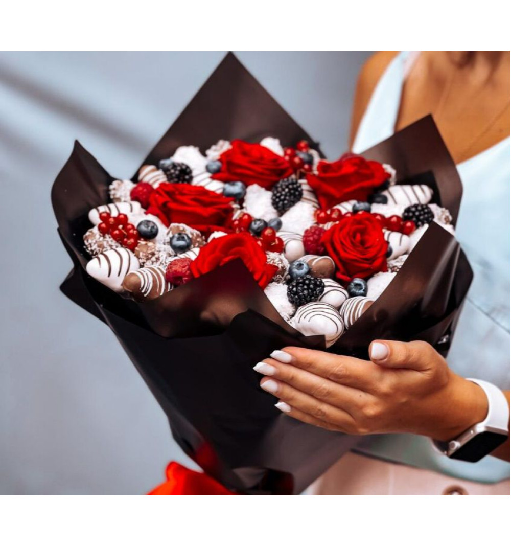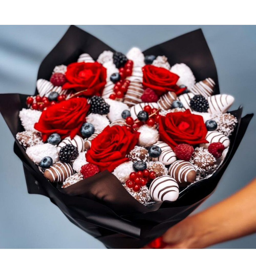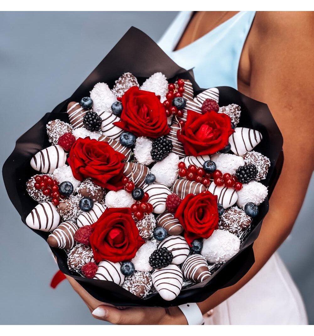 Купить Стильный букет с клубникой в Зайсане за 20 000 ₸ | интернет-магазин «Guls»